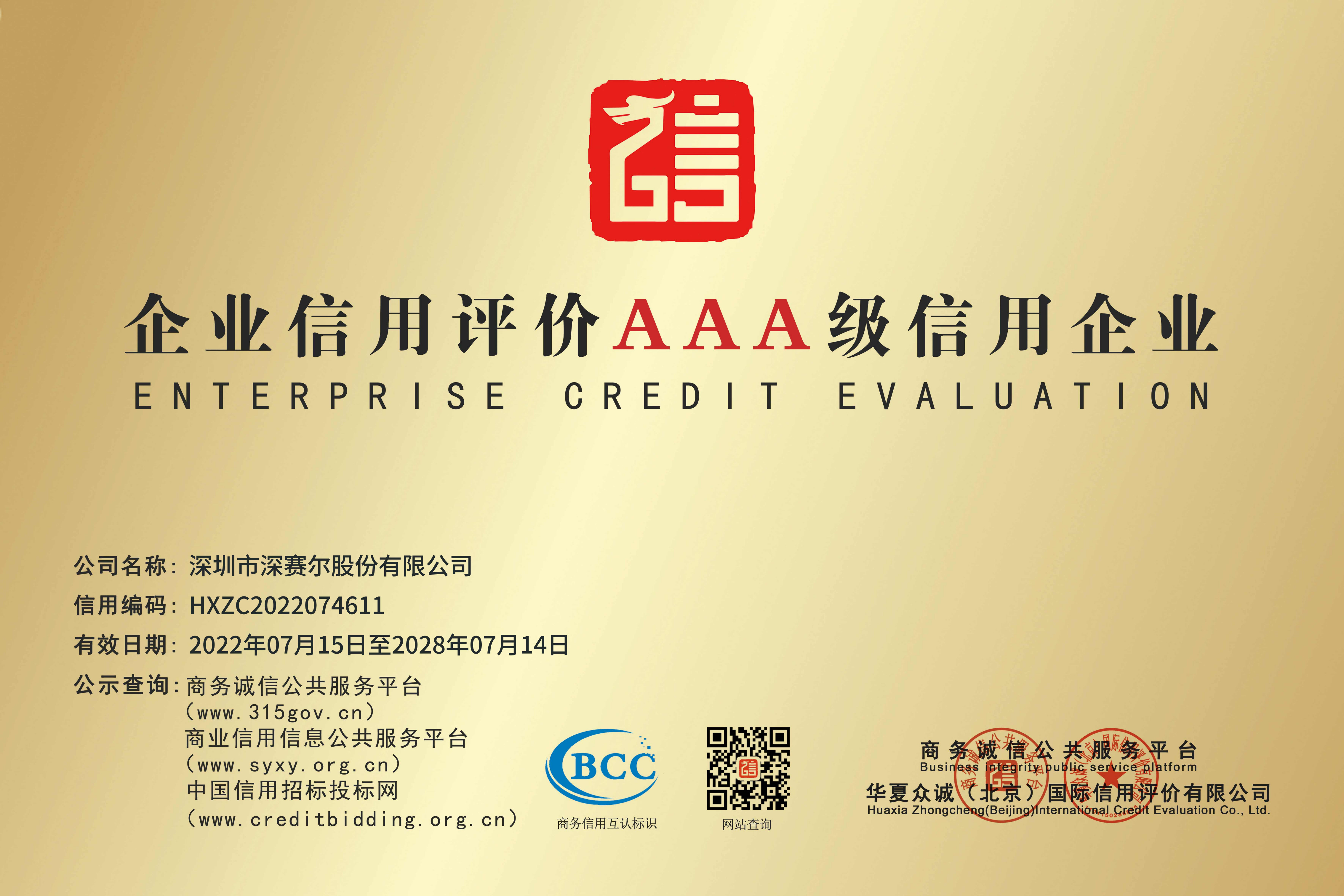 企業(yè)信用評價3A級信用企業(yè)