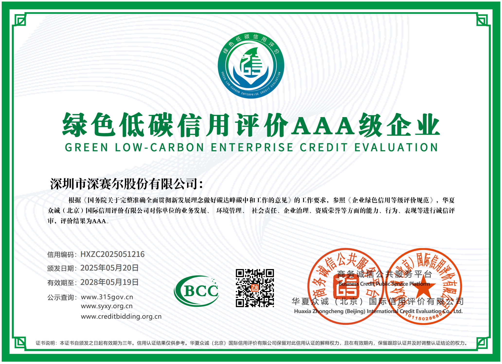綠色低碳信用評價3A級企業(yè)